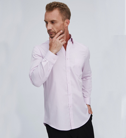男士淡粉色斜紋滌棉長袖襯衫,將男士的剛強與柔美融合在一起,凸顯了男士的成熟魅力與時尚的個人穿衣品味。